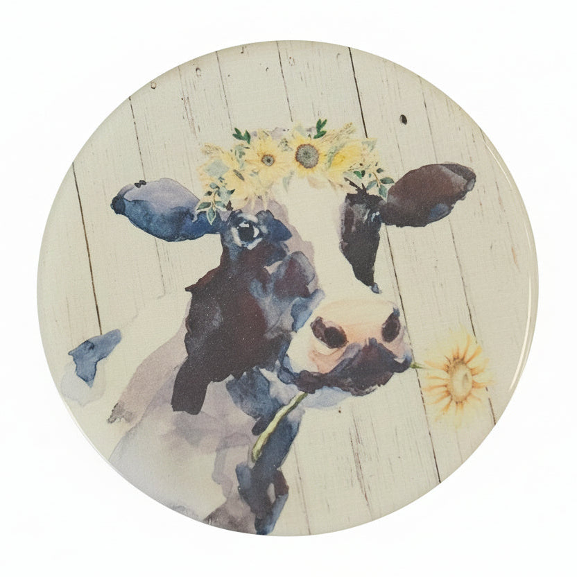Dessous de plat 8" Vache et fleurs