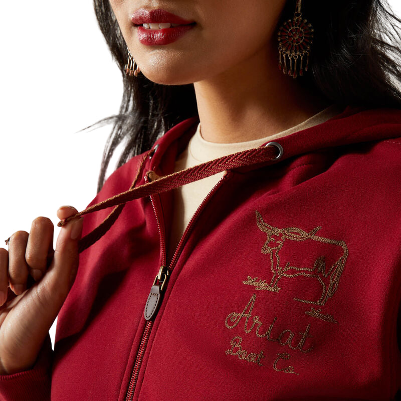 Incontournable et élégant, ce chandail à capuche confortable est confectionné en polaire douce et épaisse. Des touches dorées, une broderie western et une tirette en cuir ajoutent une touche d'élégance.