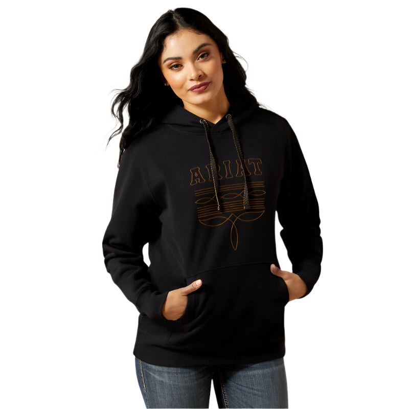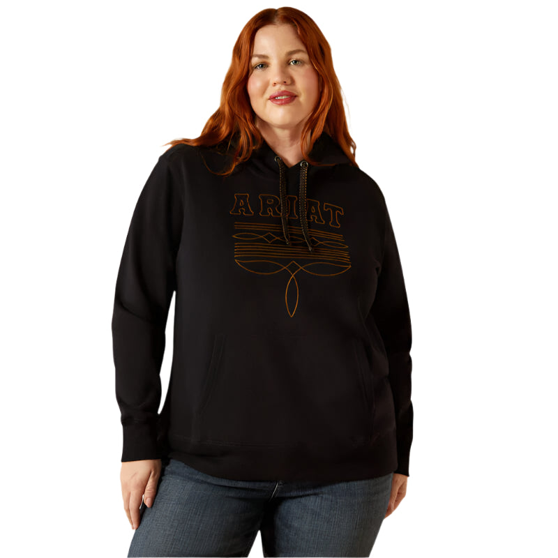 Chandail kangourou Ariat Booted Logo pour femme. Le complément parfait pour votre paire de botte préférée.