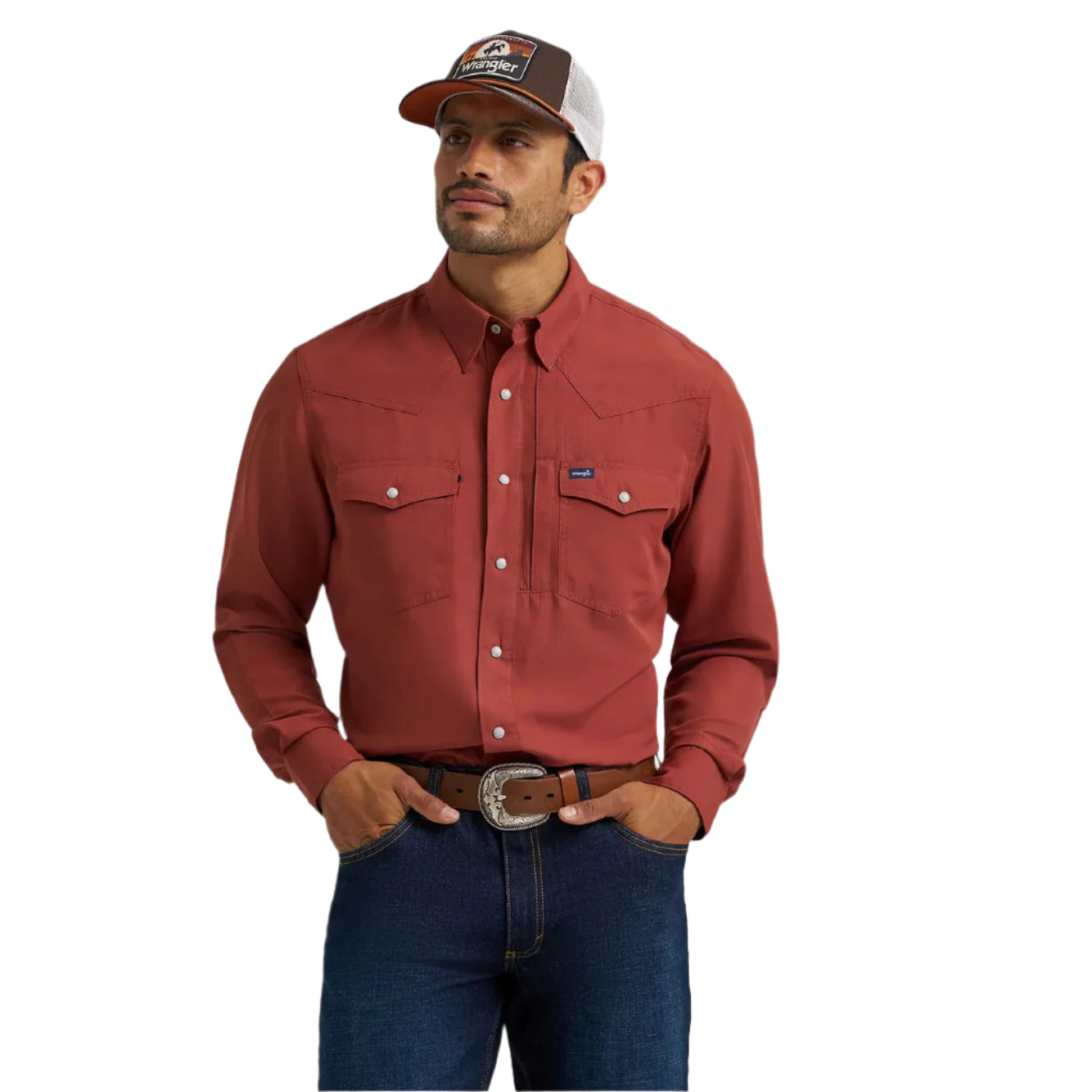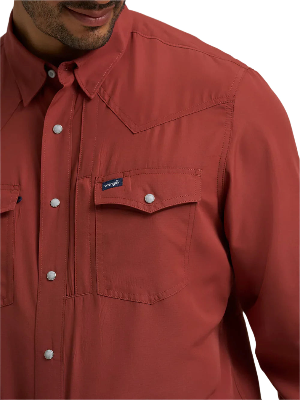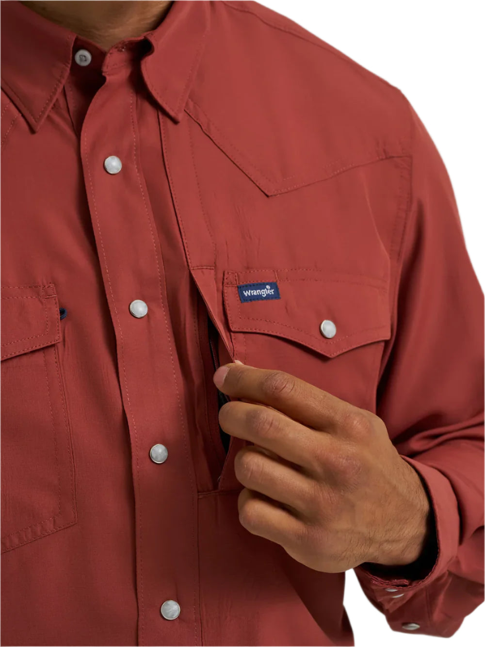 La chemise Wrangler® Performance à manches longues et boutons-pression vous offre tout le nécessaire pour affronter la journée, notamment une protection UV contre les rayons nocifs du soleil et une finition évacuant l'humidité pour vous garder au sec. Cette chemise à coupe classique est conçue pour une performance et un confort inégalés, avec une fente arrière pour une meilleure respirabilité. Elle arbore également le style western classique que vous connaissez et appréciez, avec ses empiècements pointus et sa fermeture à boutons-pression.