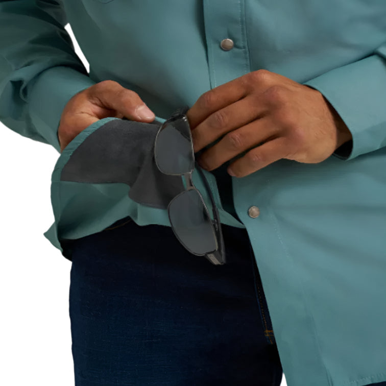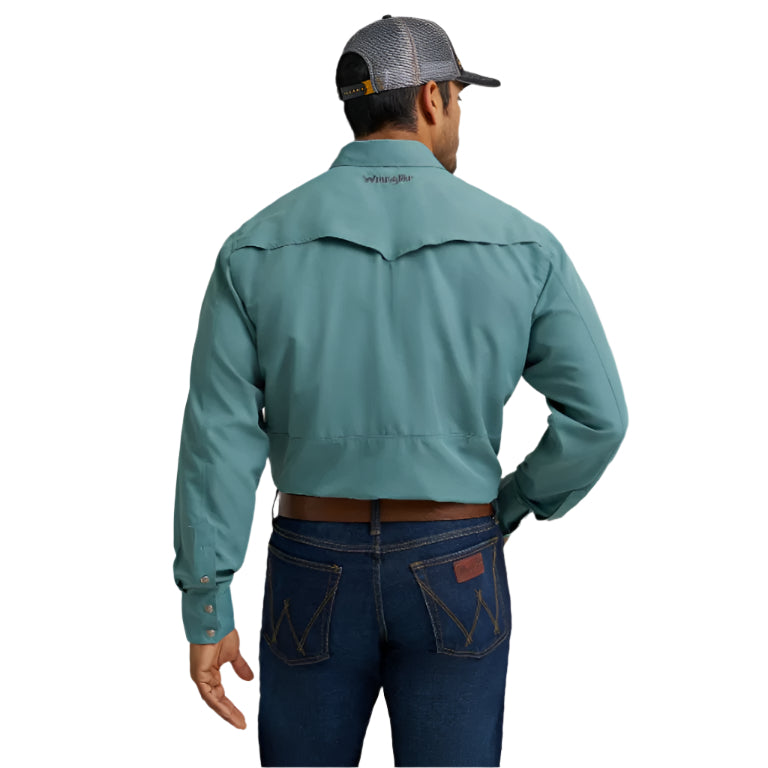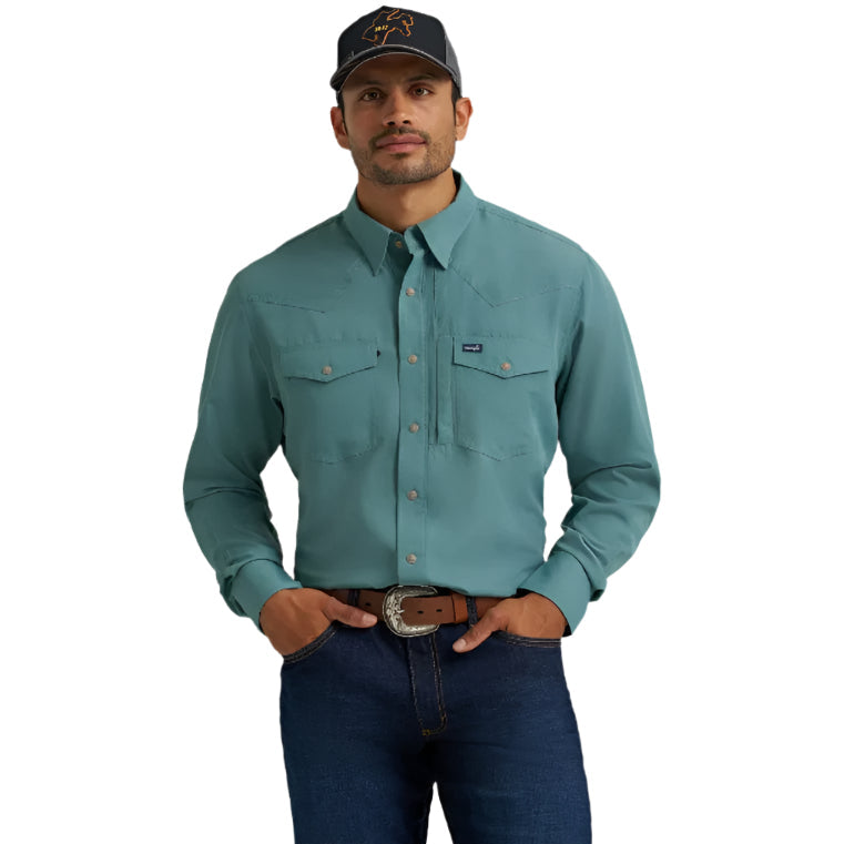 La chemise Wrangler® Performance à manches longues et boutons-pression vous offre tout le nécessaire pour affronter la journée, notamment une protection UV contre les rayons nocifs du soleil et une finition évacuant l'humidité pour vous garder au sec. Cette chemise à coupe classique est conçue pour une performance et un confort inégalés, avec une fente arrière pour une meilleure respirabilité. Elle arbore également le style western classique que vous connaissez et appréciez, avec ses empiècements pointus et sa fermeture à boutons-pression.