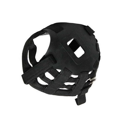 Muselière de pâturage pour aider au contrôle de la quantité d'herbe ingérée.