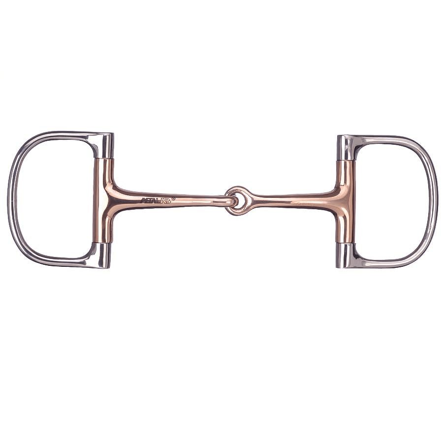 Mors à anneaux en ' D '. Embouchure en cuivre encouragent le cheval à saliver davantage et ainsi de décontracter la machoire.