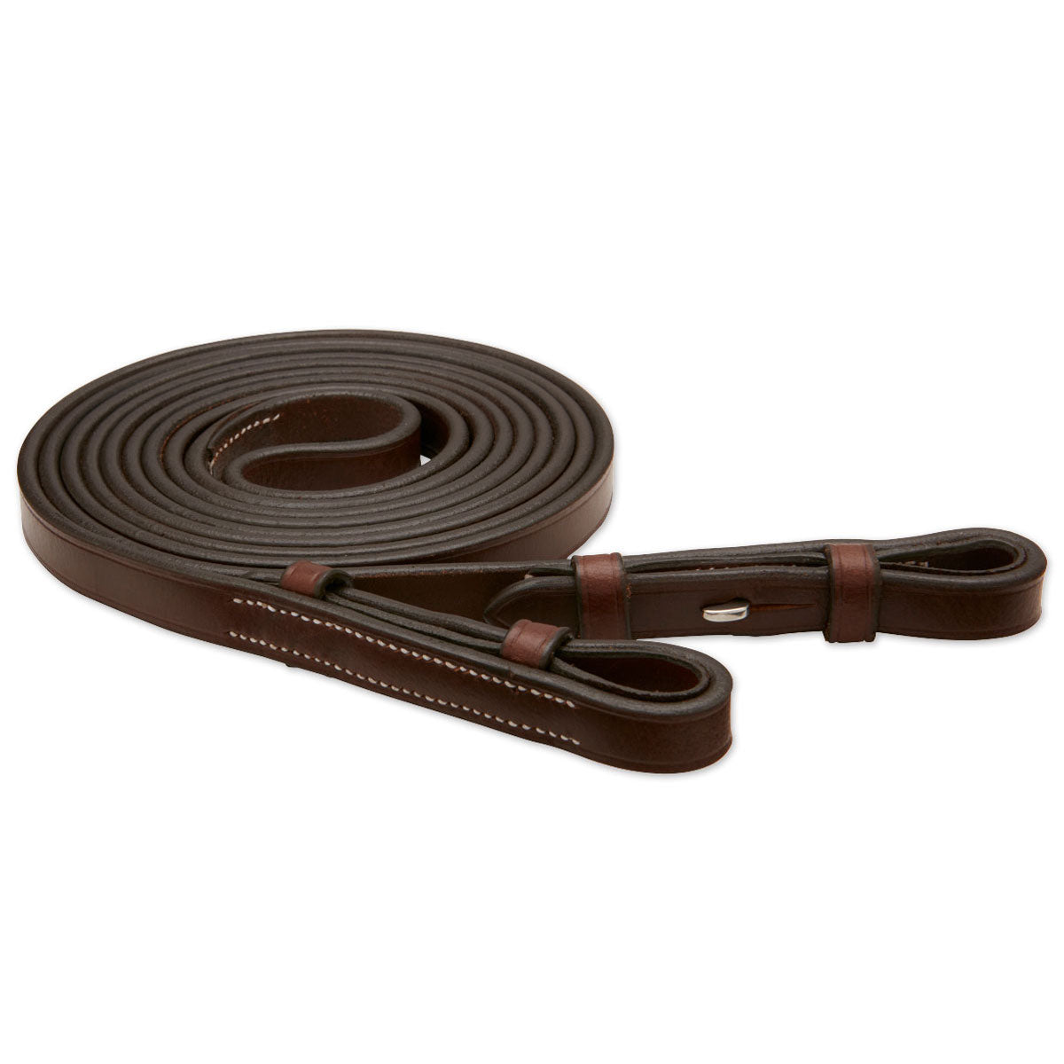 Rênes HDR en cuir véritable. Rênes unies en cuir plat utilisées principalement comme seconde rênes ou pour les poneys. Couleur : Oakbark. Largeur ½".