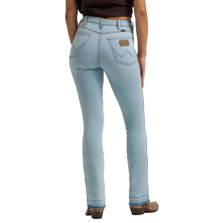 Les Boot Huggers Wrangler® x Lainey Wilson Raw Hem sont un style taille haute moderne inspiré du jean Bootcut Bailey 11MPZ de Wrangler. Un délavage indigo moyen avec un stretch qui épouse les courbes et des détails western emblématiques, ce jean est un favori de Lainey wilson. Ils sont également conçus avec un genou et une jambe plus fins qu’un bootcut classique.