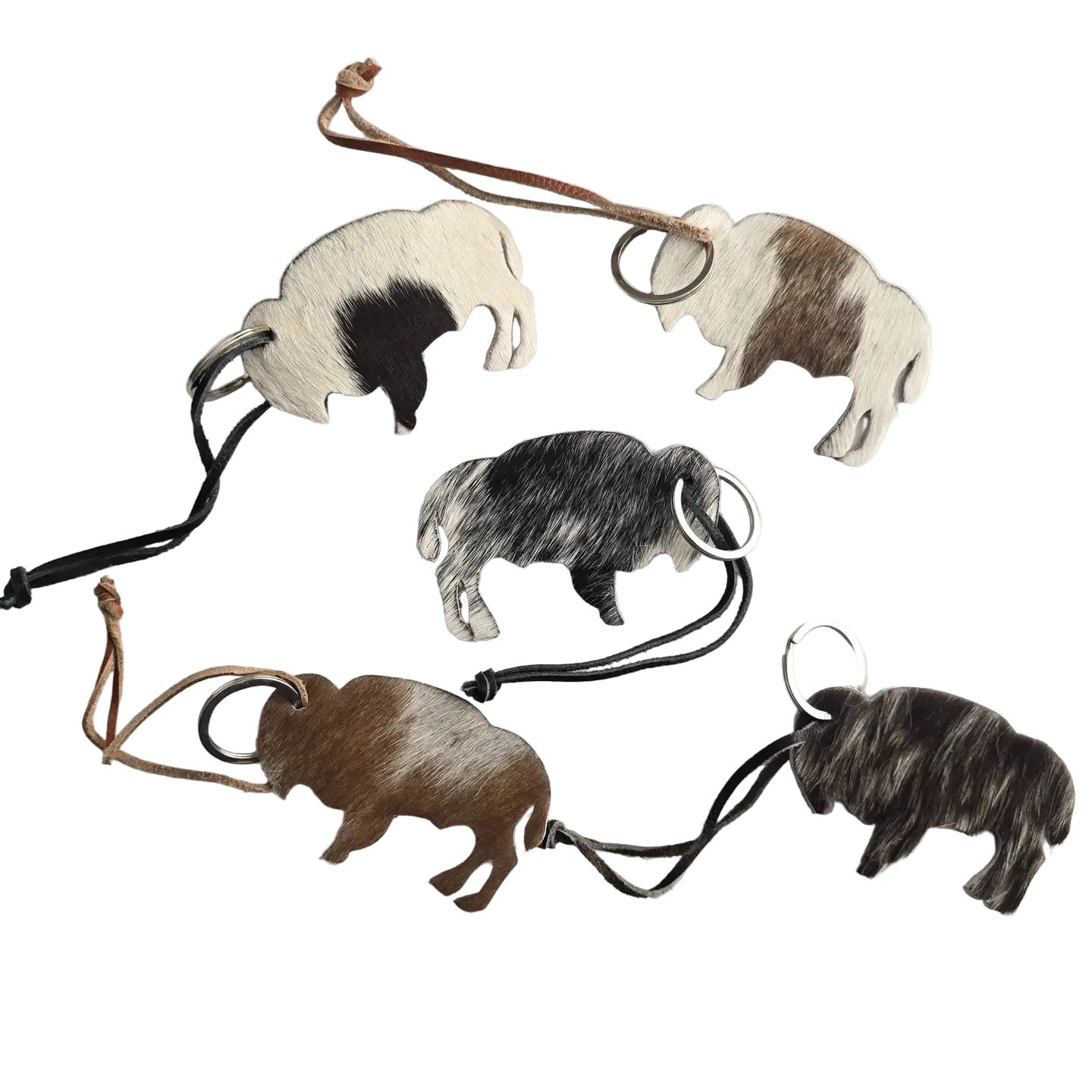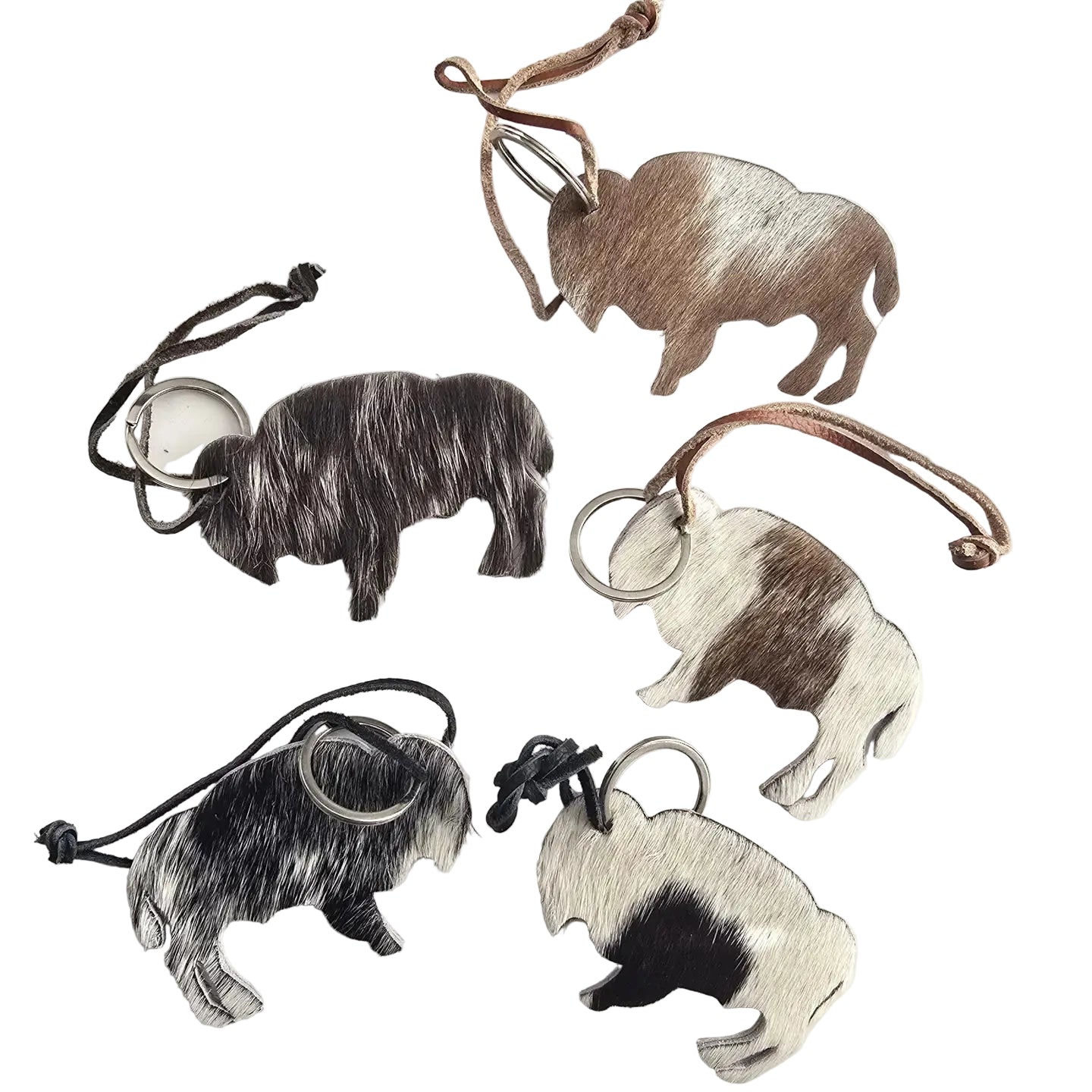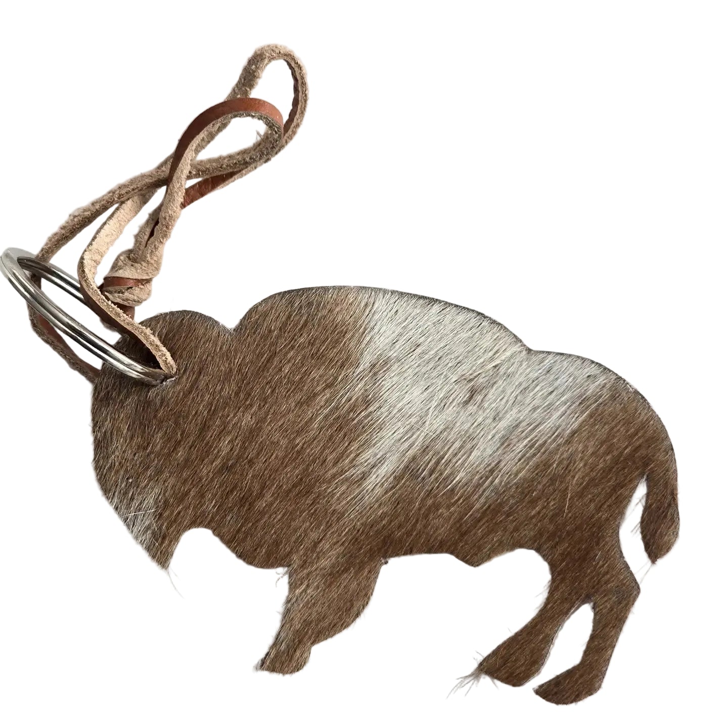 Porte-clés en forme de bison avec poils de vache véritable. Dimensions : environ 3po.