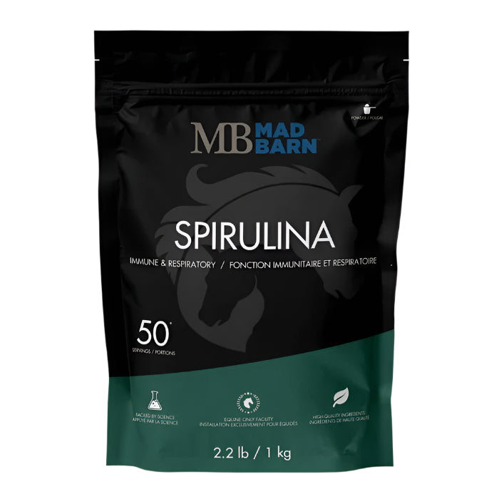Spirulina platensis est une algue bleu-vert riche en antioxydants, en acides gras, en vitamines, en minéraux et en acides aminés essentiels. La spiruline favorise la santé de la peau, du métabolisme, de la fonction pulmonaire et du système immunitaire des chevaux. Favorise la santé respiratoire des chevaux à l’entraînement ou aux voies respiratoires sensibles Bénéfique pour les chevaux souffrant d’allergies et d’irritations cutanées Riche en nutriments et en antioxydants qui contribuent à la santé générale Appétent et facile à ajouter à tout programme alimentaire.