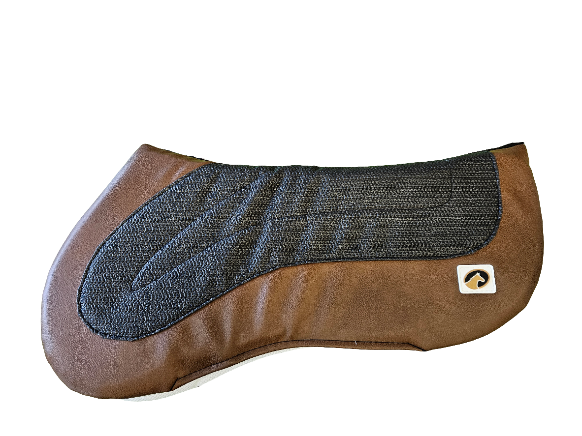 Le Flip half pad d'Ecogold offre un 2 en 1 dans plusieurs couleurs et est fabriqué dans un cuir végétal! L'équipe d'Ecogold a créé un half pad techniquement très avancé, offrant le plus haut niveau de protection, de respirabilité et de sécurité. Une surface antidérapante sur les deux côtés maintient votre selle pour un meilleur ajustement. Hypoallergénique, 100% respirant Air-Vent pour garder votre cheval au frais. Avec mousse haute résilience Premium. Offre la force d'appui et une durabilité supérieures que la mousse conventionnelle ou la mousse de mémoire (faible résilience) ne peuvent égaler. La mousse haute résilience réduit la pression au niveau des points de pressions et amortie rapidement les impacts pour fournir un soutien et une protection pour le dos de votre cheval. Inserts amovibles avec ouverture pour un ajustement parfait de la selle. Convient pour selle type saut ou tout usage. Couleur havana et fini mat. Intérieur blanc. Shims inclut.