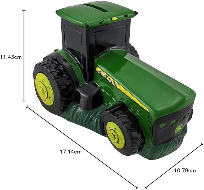 Banque tracteur John Deere. Fabriquée en polyrésine durable.