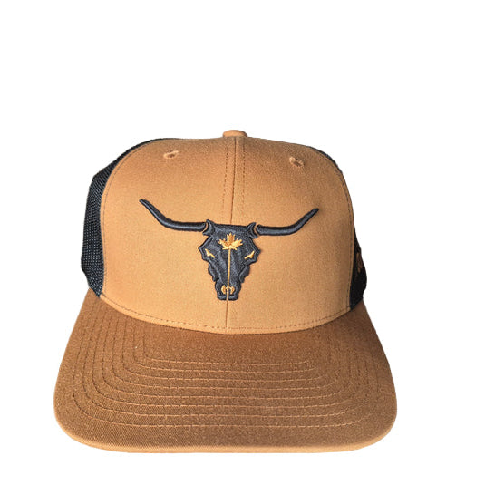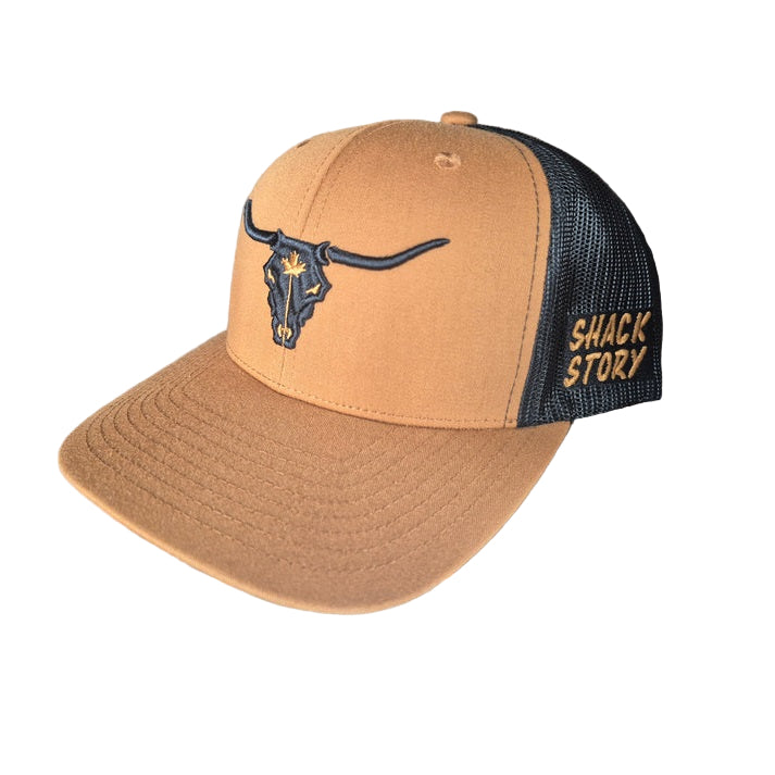 Casquette de Shack Story style Trucker cap. Caramel avec logo noir. Grandeur unique.