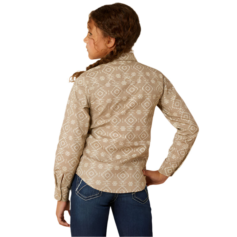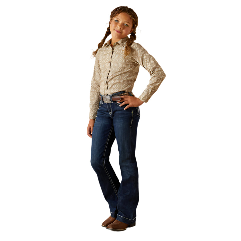 Chemise Ariat Team Kirby pour enfant. La mini version de la chemise préférée de maman possède toutes les mêmes caractéristiques de performance. Elle aura l'air et se sentira comme une pro à chaque fois qu'elle le mettra.