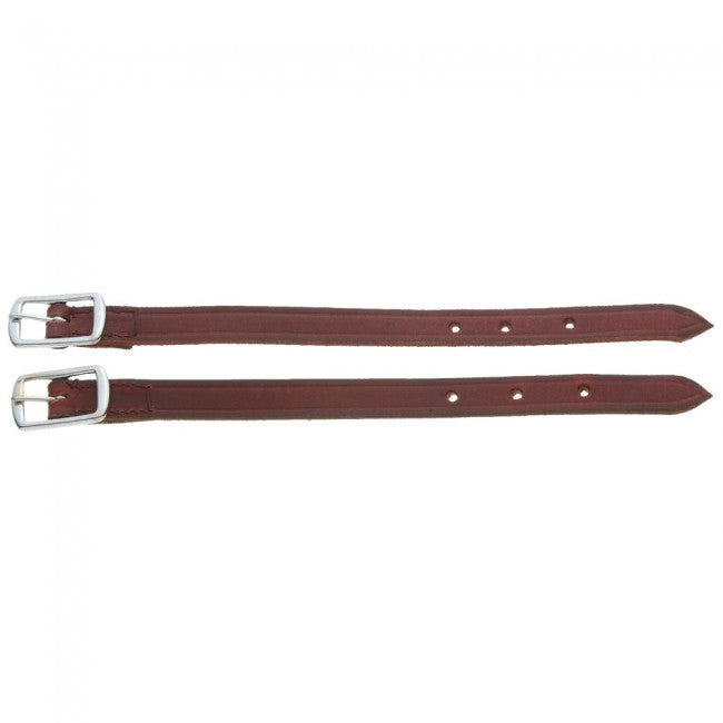 Ces sangles en cuir aident à maintenir vos étriers Western en place. Vendu à la paire. 12" de long par 1/2" de large.