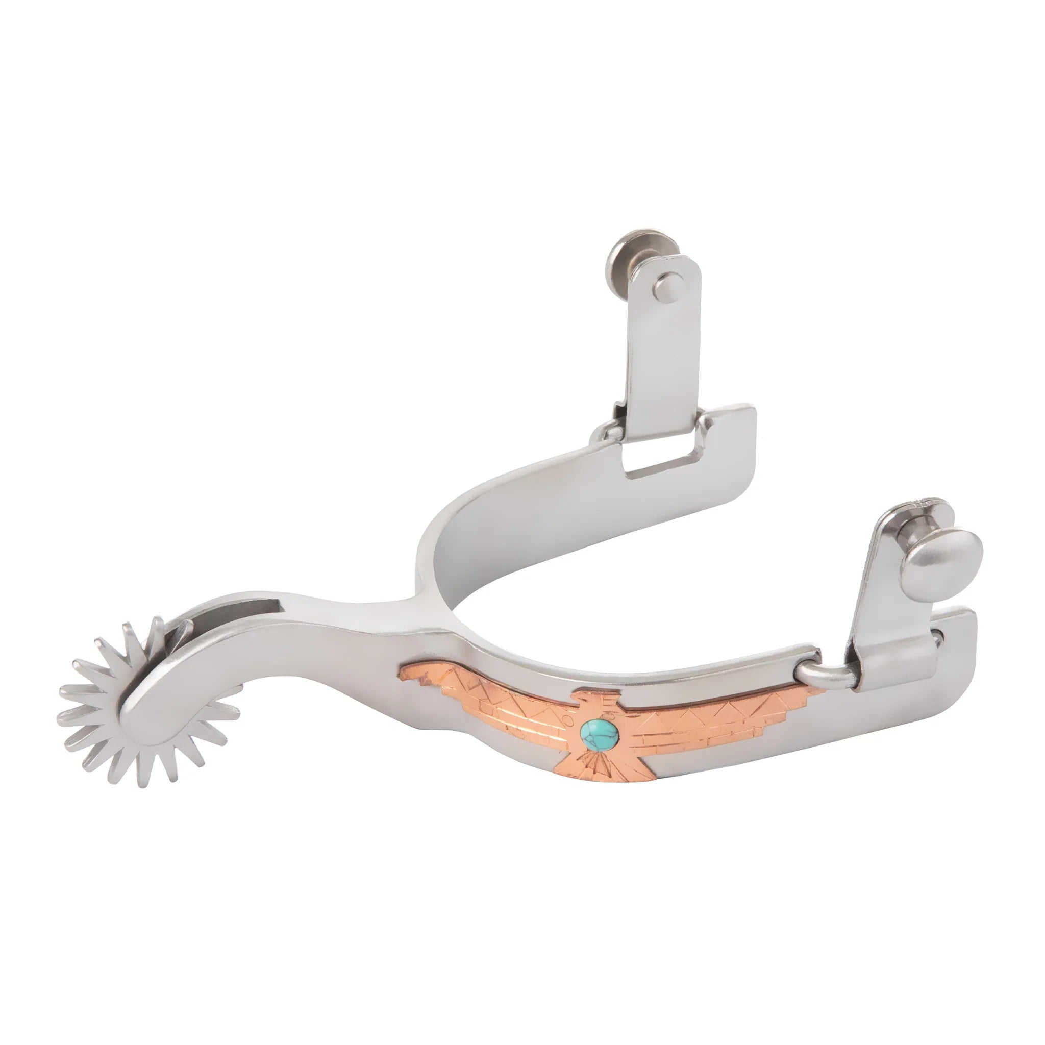 - Un magnifique design en acier inoxydable orné d'un motif d'oiseau-tonnerre et d'accents turquoise.