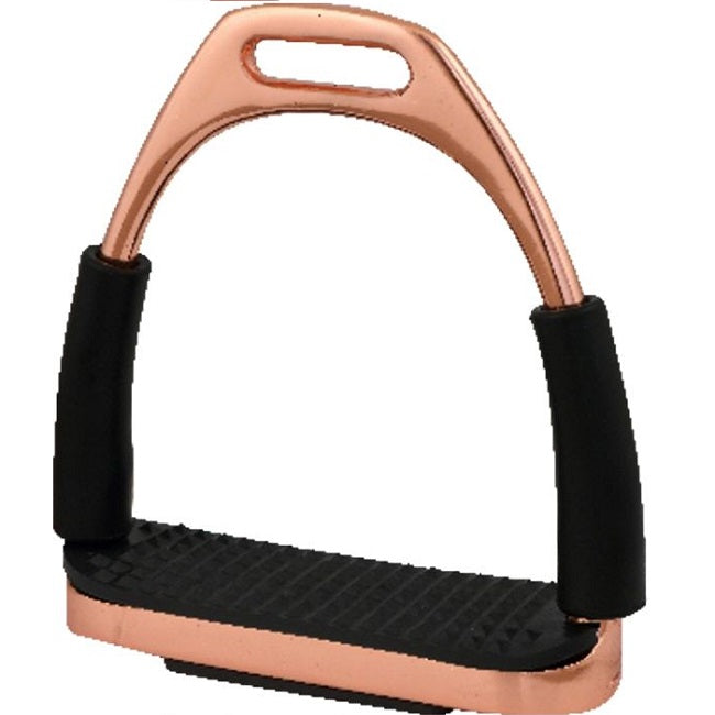 Un étrier innovant conçu pour fournir une flexibilité maximale avec une meilleure absorption des chocs. La construction unique de ressort en acier inoxydable dans les bras des étriers amortit chaque contact vers le bas pour faciliter les mouvements dans les genoux du cavalier et le dos du cheval. Le pied d'étrier offre un mouvement avant et arrière extrêmement doux pour un confort et une sécurité optimals, tout en maintenant les talons du cavalier dans la bonne position. Comprend des coussinets en caoutchouc noir et qui n’attireront pas l’attention sur le mouvement des jambes dans l’arène comme le ferait le blanc Couleur rose gold. Largeur 4 3/4".