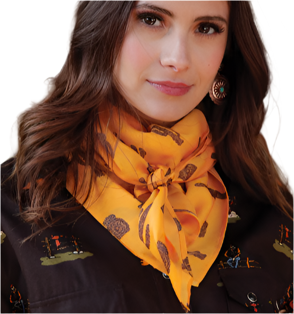 Magnifique foulard Wildrag jaune à motifs de cactus de Cruel Denim, l’accessoire indispensable pour toutes les cowgirls.