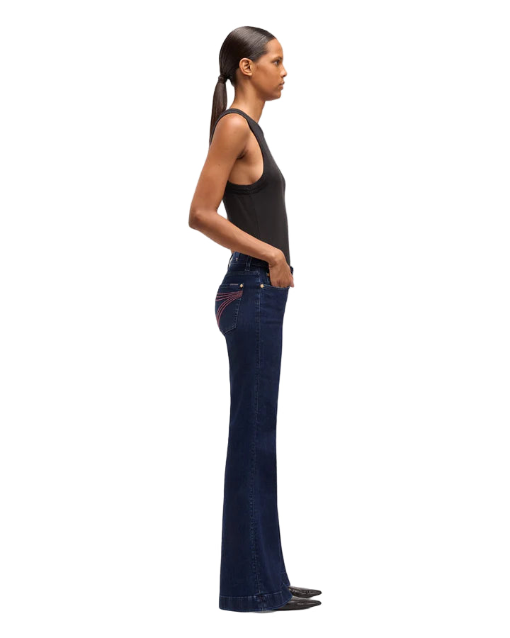 Le Jean Dojo Classical de 7 For All Mankind présente une jambe large avec un évasement subtil pour une silhouette longue et élancée. Cette paire de jeans a été confectionné avec un denim Luxe Vintage emblématique. La combinaison parfaite d'un look vintage convoité avec la quantité parfaite d'élasticité.