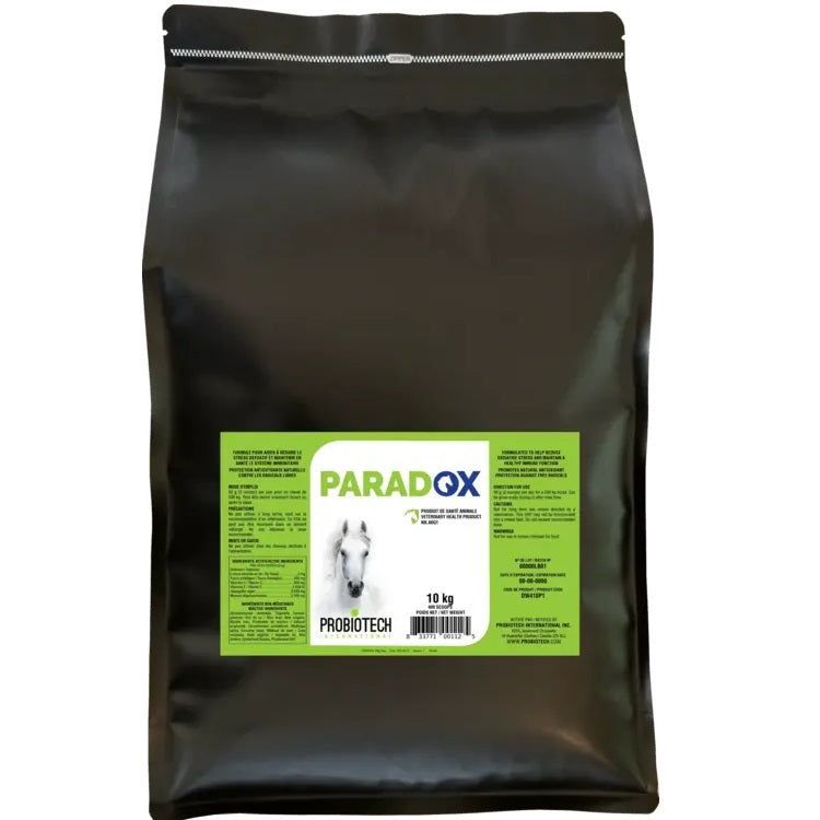 Protégez votre cheval contre le stress oxydatif avec le supplément Paradox. Le supplément cubé Paradox fournit à votre cheval le duo d’antioxydants : la vitamine E et le sélénium 100% organique. Utiliser quotidiennement Paradox est la méthode idéale et simple de vous assurer que votre cheval reçoit le sélénium et la vitamine E dont il a besoin. Une étude publiée et menée au Québec sur des chevaux recevant le Paradox pendant 30 jours, a démontré que la dose journalière de Paradox a permis d’améliorer significativement le statut en sélénium des chevaux.