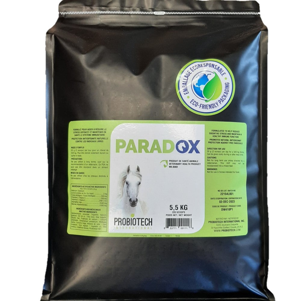 Protégez votre cheval contre le stress oxydatif avec le supplément Paradox. Le supplément cubé Paradox fournit à votre cheval le duo d’antioxydants : la vitamine E et le sélénium 100% organique. Utiliser quotidiennement Paradox est la méthode idéale et simple de vous assurer que votre cheval reçoit le sélénium et la vitamine E dont il a besoin. Une étude publiée et menée au Québec sur des chevaux recevant le Paradox pendant 30 jours, a démontré que la dose journalière de Paradox a permis d’améliorer significativement le statut en sélénium des chevaux.