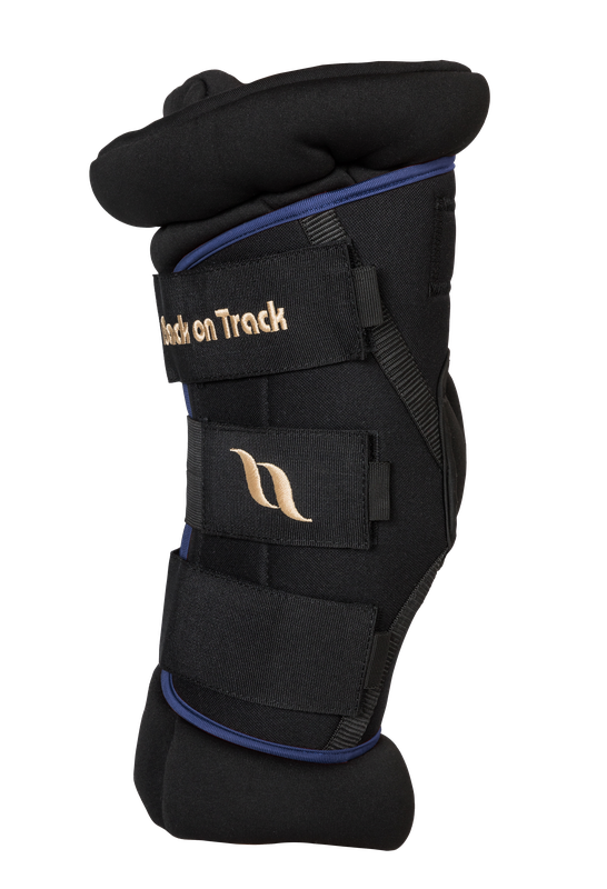 Protège-jarret Back On Track Royal deluxe avec trous, désormais dotées d'un nouveau design élégant. Ces guêtres plébiscitées offrent souplesse, facilité d'utilisation et un ajustement anatomique plus protecteur. Le rembourrage intérieur épais aux bords doux assure un confort maximal, tandis que l'ouverture oblongue améliorée au niveau du jarret optimise la performance et empêche tout glissement. Le bord supérieur est arrondi pour éviter la pression sur les tendons, et trois sangles auto-agrippantes, dont une sangle centrale élastique en deux parties, préviennent la pression sur les articulations. Le rembourrage intérieur amovible est facile à nettoyer et intègre notre technologie Welltex®, qui contribue à soulager les gonflements, les raideurs et les douleurs. Idéales pour prévenir et soulager l'arthrose, l'inflammation et les gonflements, ces guêtres sont parfaites pour le transport et s'associent parfaitement avec nos bandes de protection Royal Quick Wraps Deluxe. Les élégantes côtes colorées s'harmonisent avec nos couvertures en maille Royal Mesh Sheet Deluxe et nos bandes de protection Royal Quick Wraps Deluxe.