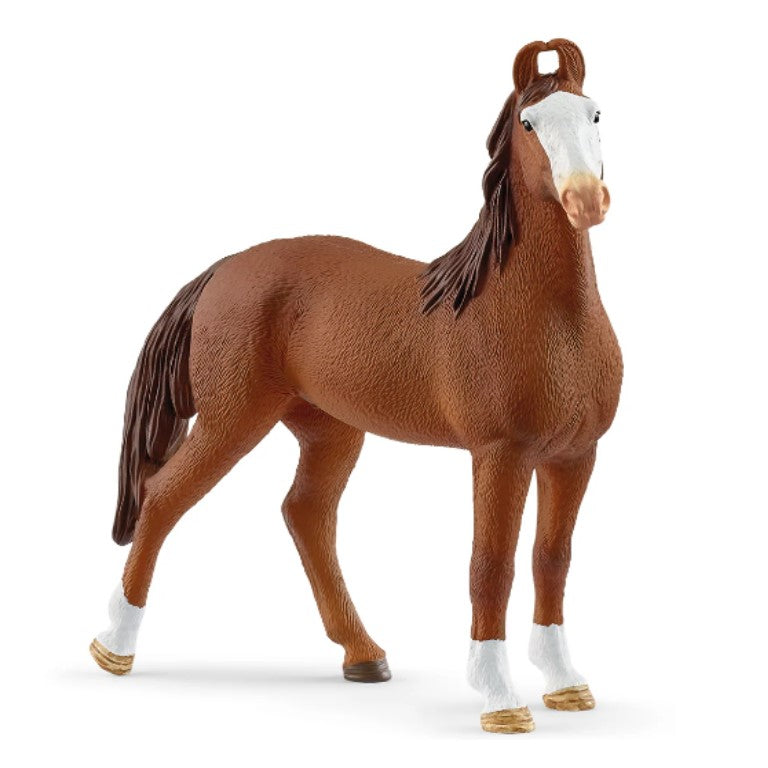 La jolie jument Marwari est immédiatement reconnaissable à ses oreilles en forme de croissant. Ce sont des caractéristiques de cette ancienne race de chevaux originaire de l’Inde. Son visage est de couleur blanche et contraste joliment avec son pelage autrement brun. Son museau rose est si doux qu'on a envie de le caresser.