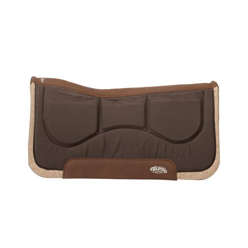 Tapis Shim Pad de Weaver Leather. Possède des inserts en foam EVA amovibles pour s'ajuster parfaitement à la selle. Le feutre épais en mélange de laine avec la mousse EVA procure une excellente absobtion et protection pour cheval. La laine repousse égalment naturellement l'humidé et la sueur. Dimensions: 32"x 32". Brun.