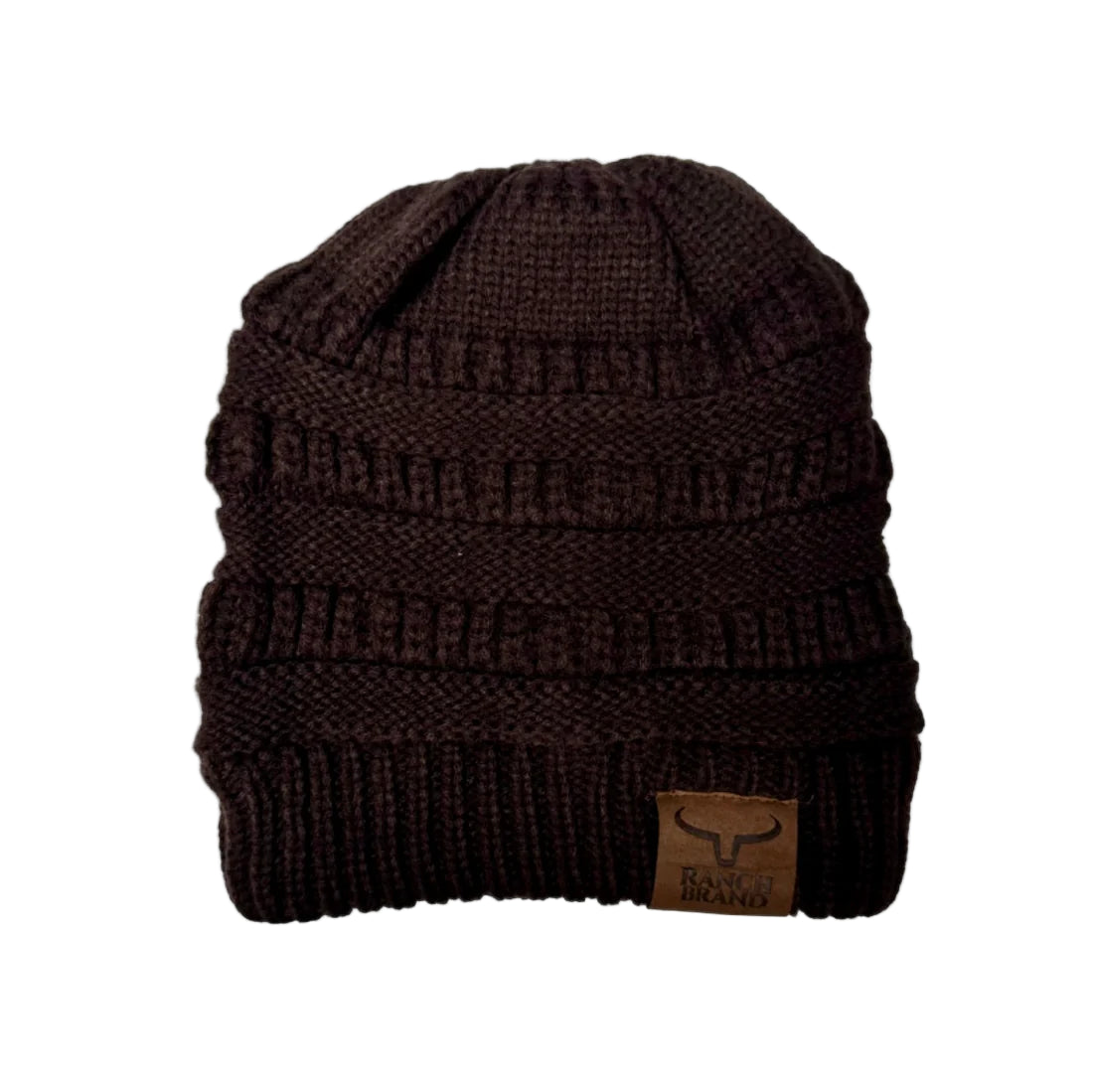 Tuque avec ouverture élastique sur le dessus pour laisser passer la queue de cheval. Fabriqué en acrylique ultra-confortable. Logo estampillé sur un patch en cuir. Brun.