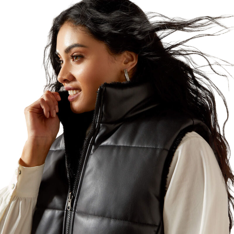 Changez de look en un clin d'œil avec cette veste ultra-douce et ultra-bouffie. Confectionné en similicuir d'un côté et en fausse fourrure de l'autre, elle est courte à la longueur idéale pour un jean taille haute.